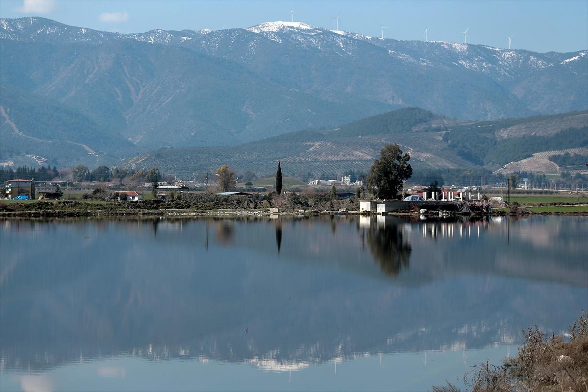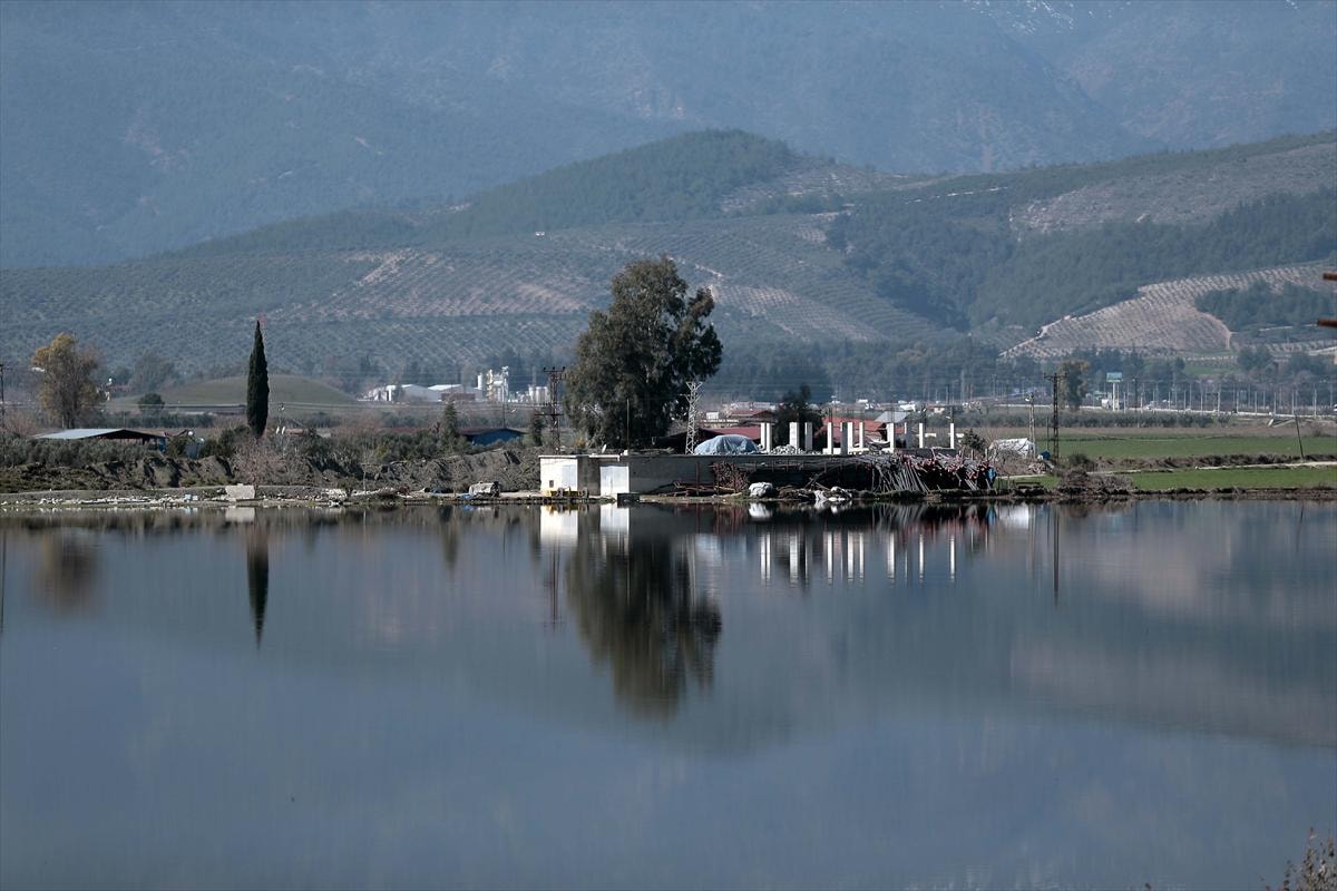 Depremden etkilenen illerden biri olan Hatay'ın Antakya ilçesine bağlı kırsal Aşağıoba Mahallesi'nden geçen Karasu Çayı'nın da su seviyesi yükseldi.
