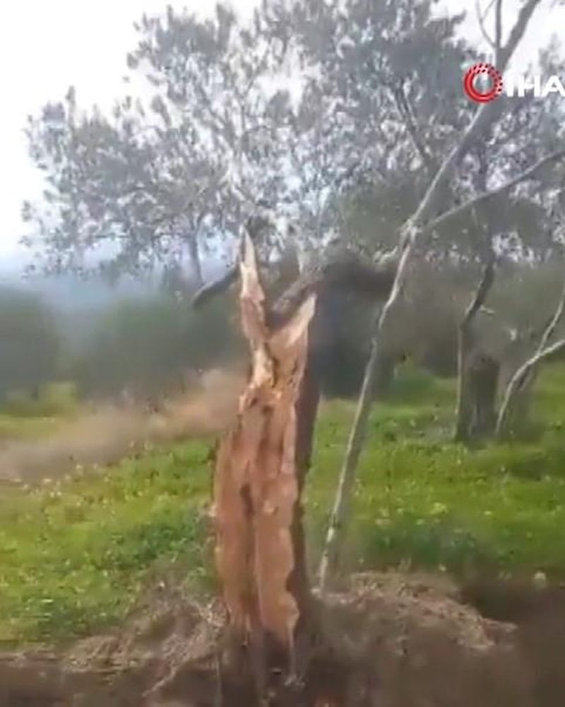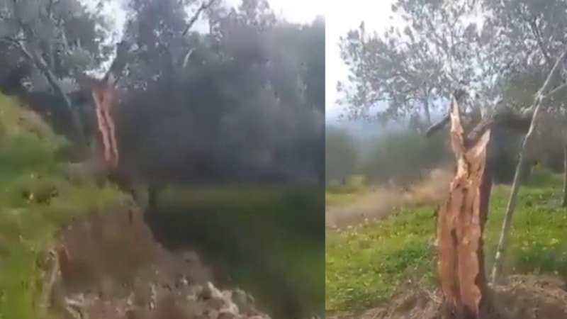 Fay, bir bahçede bulunan zeytin ağacını ortadan ikiye bölerek, parçalar arasındaki mesafeyi 10 metre açtı.