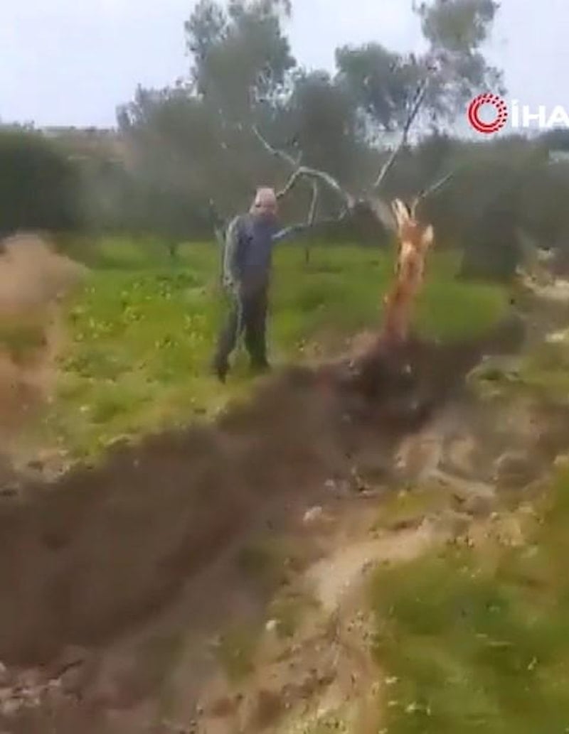 Yıkımın büyük olduğu Samandağ'da kırılan fay hattı, ikiye böldüğü zeytin ağacının parçalarını 10 metre uzağa taşıdı.
