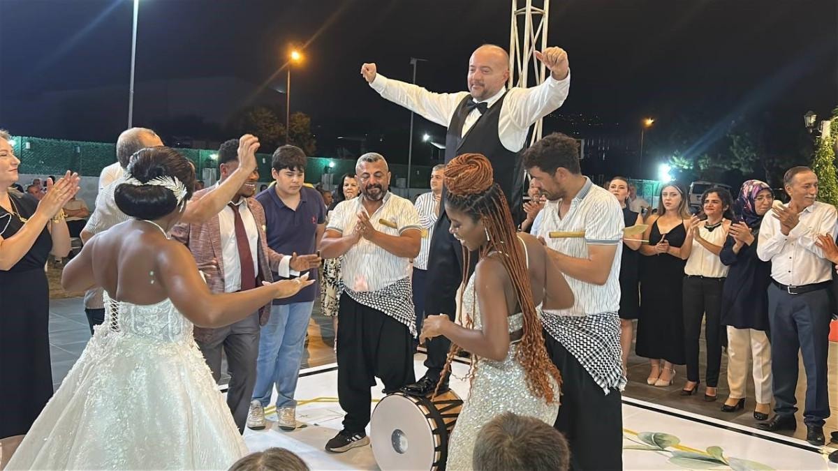 Kıtaları aşarak gerçekleşen düğünde Ganalı gelinin ailesi ve kendisi, düğünde davul zurna eşliğinde doyasıya eğlendi.