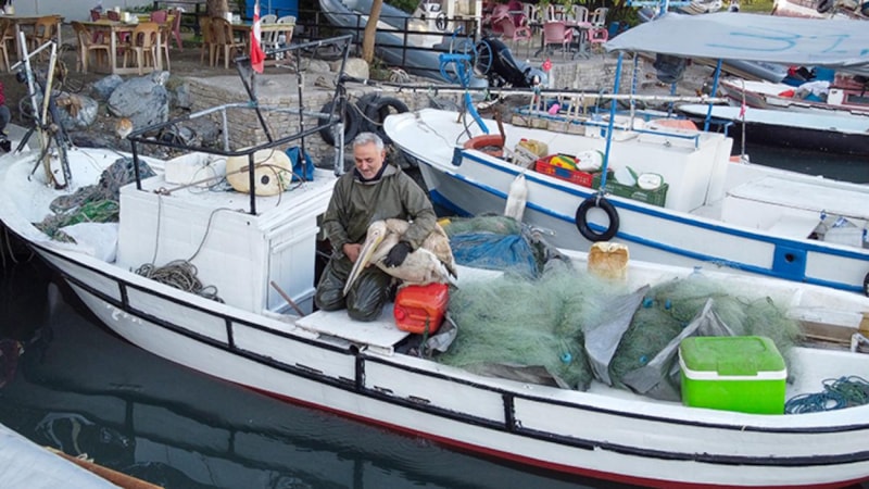 Uçar, Suzi’yi kucağına alıp sevdiğini belirterek, “Bazen sabahları beni bekliyor ve yanıma geliyor. Ağları seçerken benden balık alıp yiyor, sonra biraz geziyor ve geri dönüyor. Evladımız gibi oldu, alıştık kendisine.” ifadelerini kullandı.