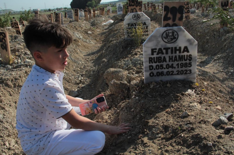 Annesinin mezar taşını sevip toprağından elini çekmeyen küçük çocuk, dakikalarca dualar okudu. Annesi ve kardeşleri için çok ağladığını belirten Ahmet Kala, devamlı dua okuduğunu söyledi.