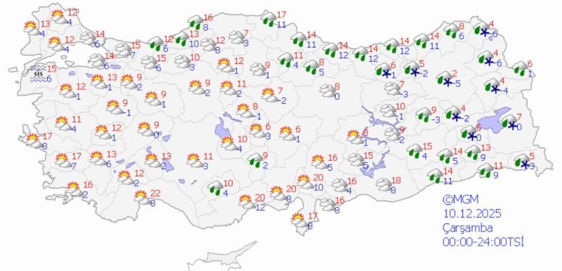 Meteoroloji Genel Müdürlüğü, yeni hava durumu raporunu yayınladı.