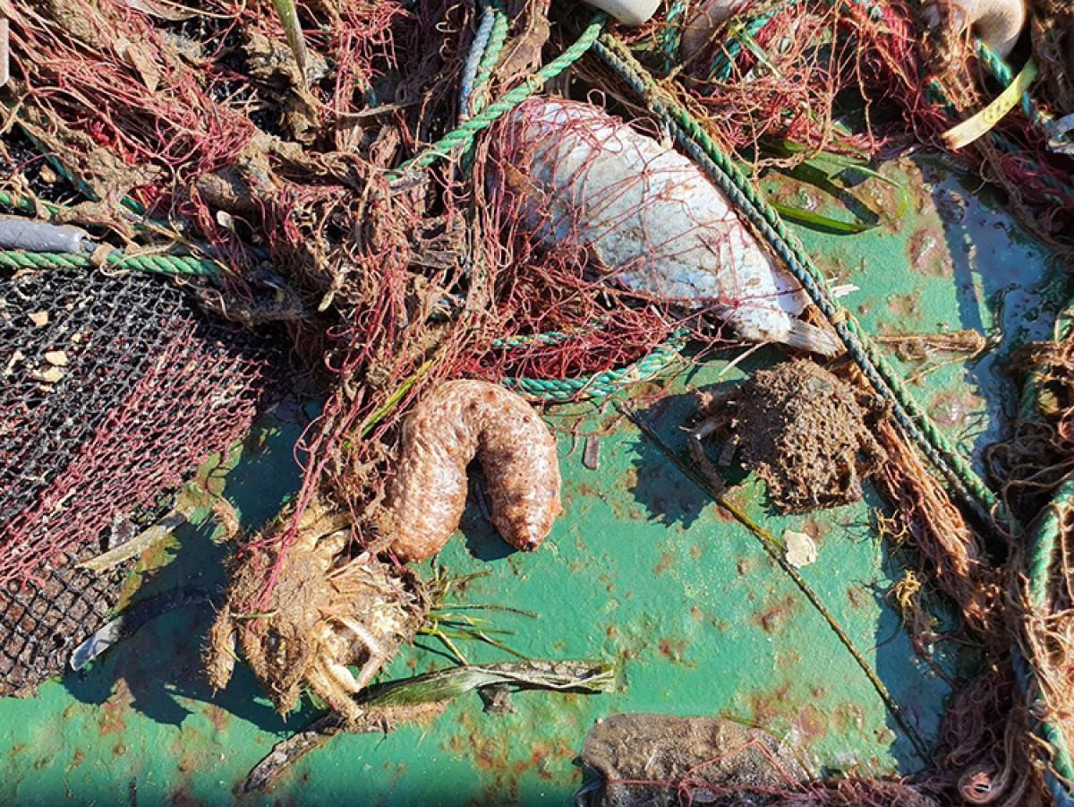 Bir ağın üzerinde vatoz vardı, nesli tükenmekte olan türlerden. Başka bir ağda lapin türü vardı. Artık çürümeye başlamış haldeydi. Farklı bir noktada deniz hıyarı ve 3 tane örümcek yengeci dediğimiz türe rastladık. Bunların tümü nesli tükenmekte olan canlılar. Ve bu ağların deniz içinde bu türlere zarar verdiğini tespit etmiş olduk. Çünkü ağ orada kaldığı sürece avlanmaya devam ediyor.