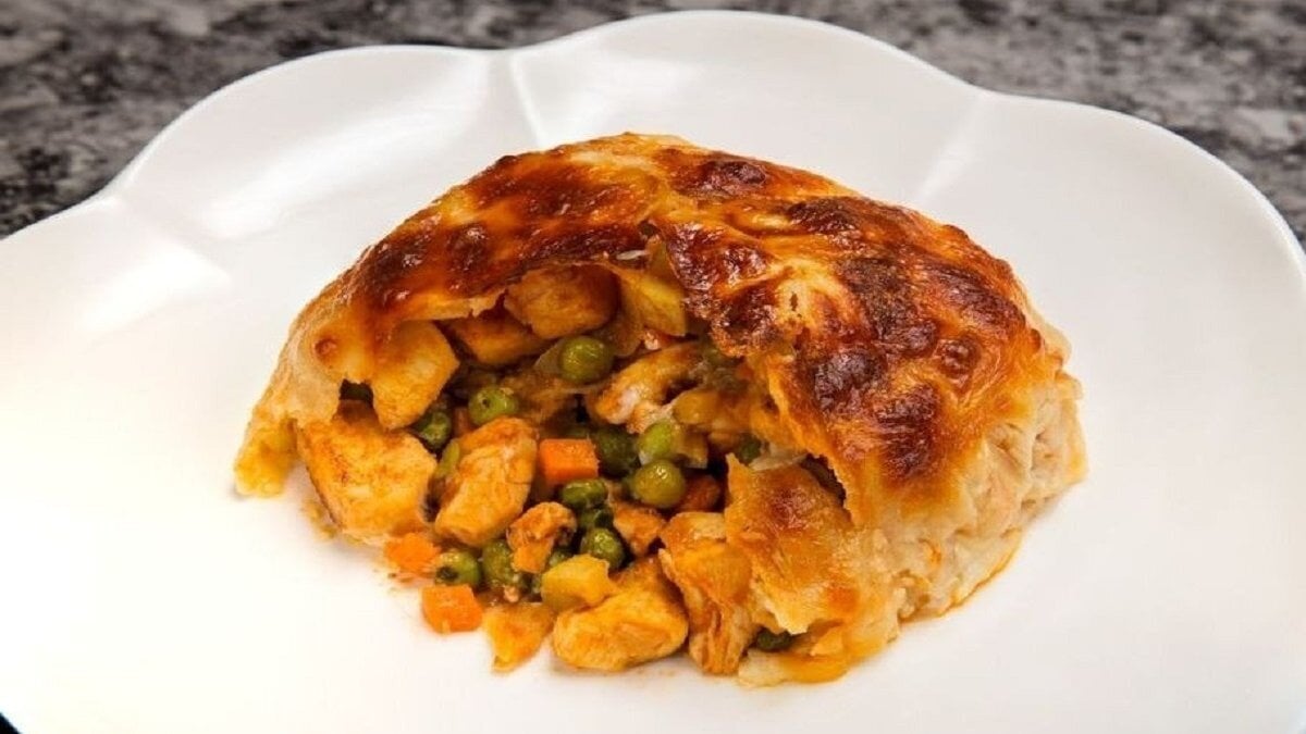 250 gram tavuk (kuşbaşı doğranmış ve haşlanmış) 100 gram bezelye 1 adet havuç (küp doğranmış) 1 adet kabak (küp doğranmış) 1 adet soğan (küp doğranmış) 1 adet yufka 200 ml su 1 tatlı kaşığı domates salçası 3 diş sarımsak (ince kıyılmış) 100 gram rendelenmiş kaşar peyniri 1 yemek kaşığı sıvı yağ 2 çay kaşığı tuz 1 yemek kaşığı tereyağıBeşamel sos için: