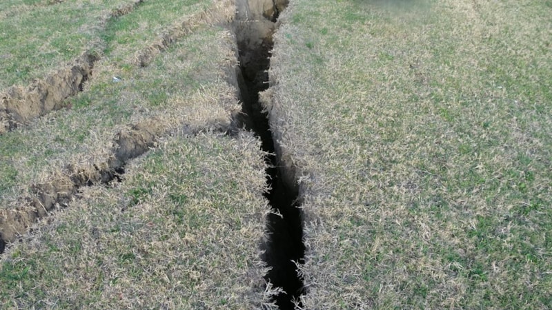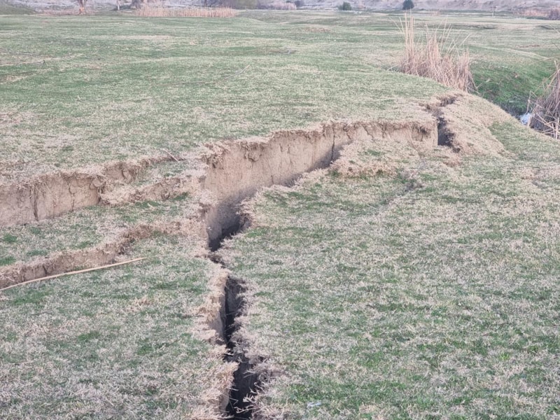 Yaklaşık 1 kilometrelik alanda yer yer 2 metrelik derinliklerin bulunduğu yarıklar depremin şiddetini bir kez daha gözler önüne serdi.