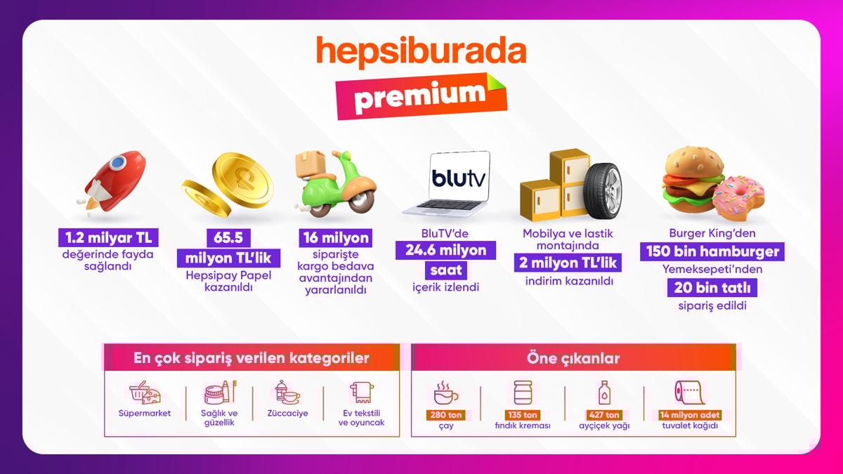 Premium kullanıcıları, her alışverişlerinde kargo bedava avantajından yararlandı. Sepet tutarından bağımsız tüm siparişlerde geçerli kargo bedava avantajıyla 340 milyon TL değerinde fayda elde ettiler.