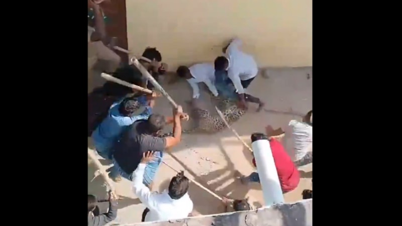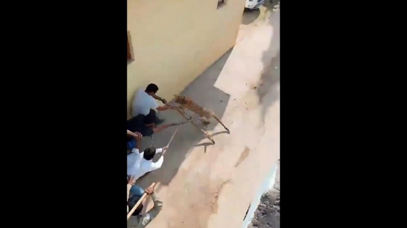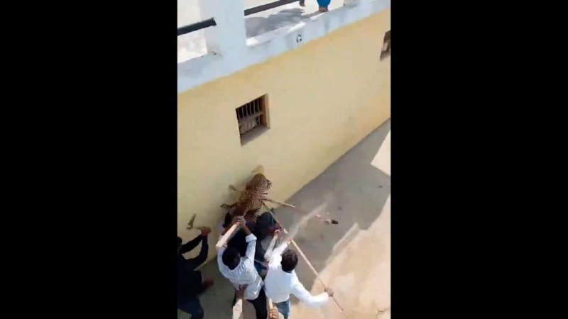 Görüntülerde bir leoparın Hindistan'da köylülere saldırdığı görülüyor.