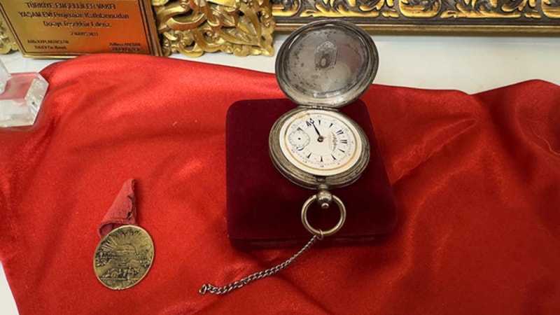 "Burada Çanakkale Savaşlarında kullanılan el işlemesiyle şeker çuvalından yapılmış Türk bayrağı var. Köylerde dut ağacının dalına asılı olan bu bayrağı, gençler alıp savaşa gidiyorlarmış. Diğer taraftan savaşta bir İngiliz askerinin bir Türk askerimizi şehit ettikten sonra ganimet olarak aldığı altın köstekli saati, 97 yıl sonra İngiltere’de yapılan açık artırmada satın aldım. Bu ve buna benzer orijinal malzemelerin bende bulunmasından dolayı mutluyum. Beraber yaşadığım 88 yaşındaki annemle ziyaretçilere bunları ücretsiz sunuyoruz."