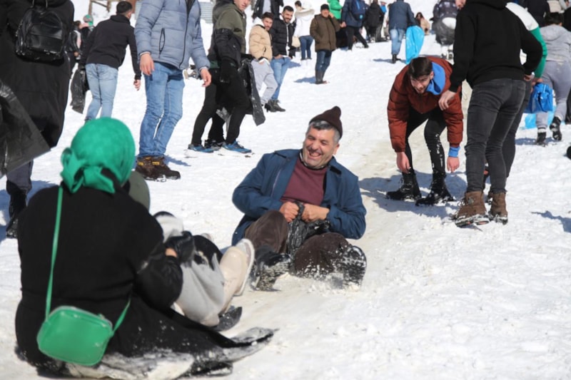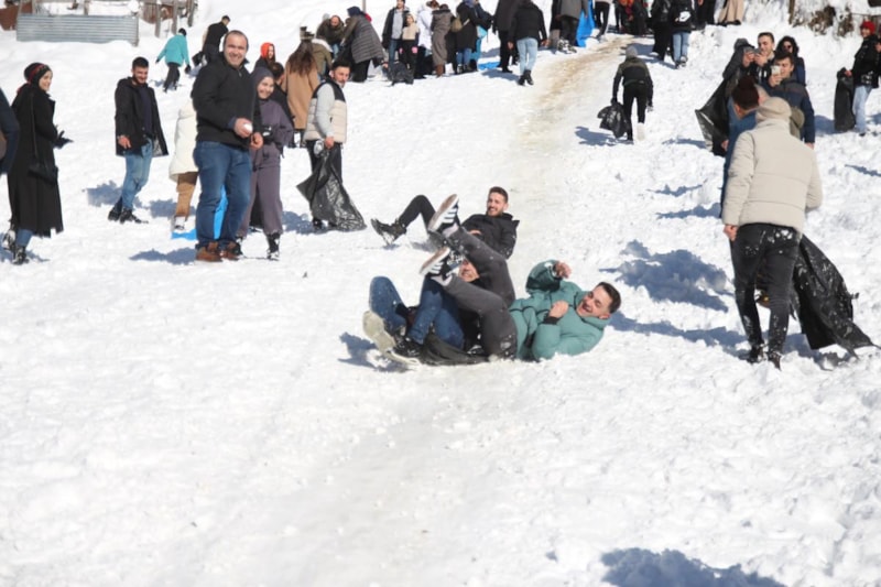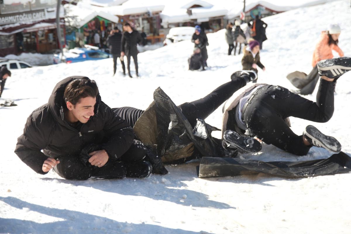 Güzel bir şekilde kayıyorduk. Arkamızdan gelenler bizi düşürdüler ama heyecan çok güzel. Elazığ’dan geliyorum. Kaymak için geldik. Kar çok güzel. Atmosfer çok güzel. Dün yağan karı kaçırdık. Bugünkü heyecanı kaçıramadık. Hava güzel, manzara da güzel. Gayet keyifli geçiyor.