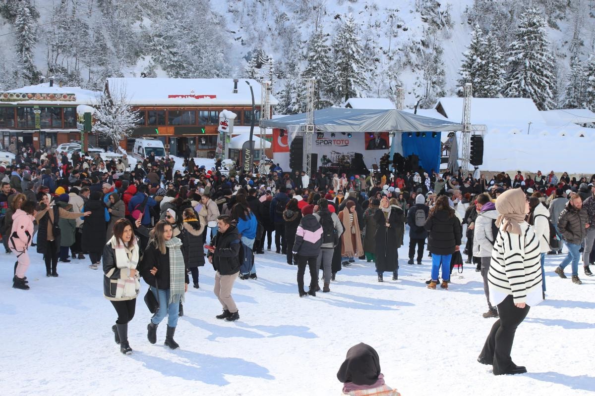Dün gece saatlerine kadar kar yağmasıyla şenlik alanı karla doldu.