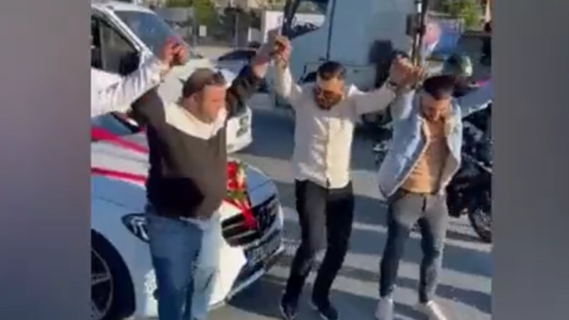 Horon tepen düğün konvoyuna katılan tır şoförünün o anları, sosyal medya üzerinden viral oldu.