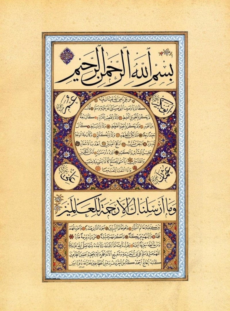 Hilye-i Şerif, Nebiler nebisi Hz. Muhammed'in (s.a.v) fiziki halinin tasvir edilmiş halidir. Rivayetlere göre Peygamberin, ağır bir hastalık geçirdiği dönemde kızının ağlayarak "senin gül yüzünü bir daha nasıl göreceğiz" demesi üzerine Hz. Ali'ye (r.a) yazdırdığı kelimelerden oluşan resimdir. Rasulullah şöyle buyurmuştur: