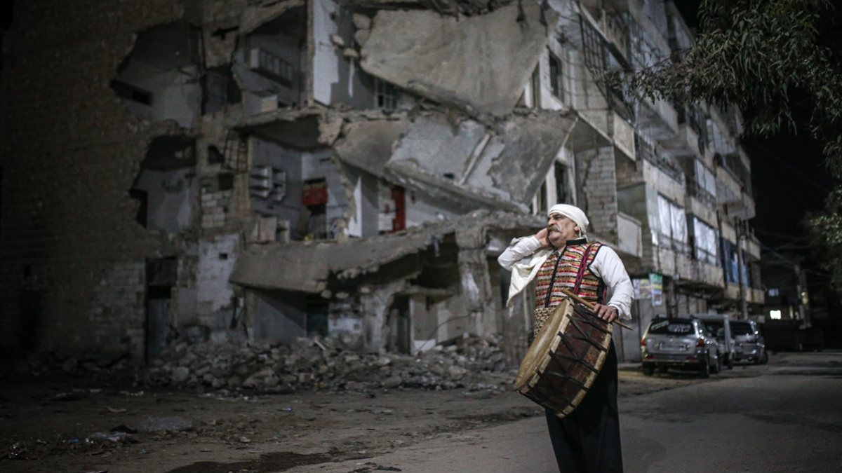 İdlib'in güneyindeki Eriha ilçesinde Ramazan davulculuğu yapan Ahmed Şehrur, Beşar Esad rejimi ve destekçilerinin yoğun saldırıları nedeniyle harabeye dönen sokakların arasından geçerek halkı sahur için uyandırıyor.