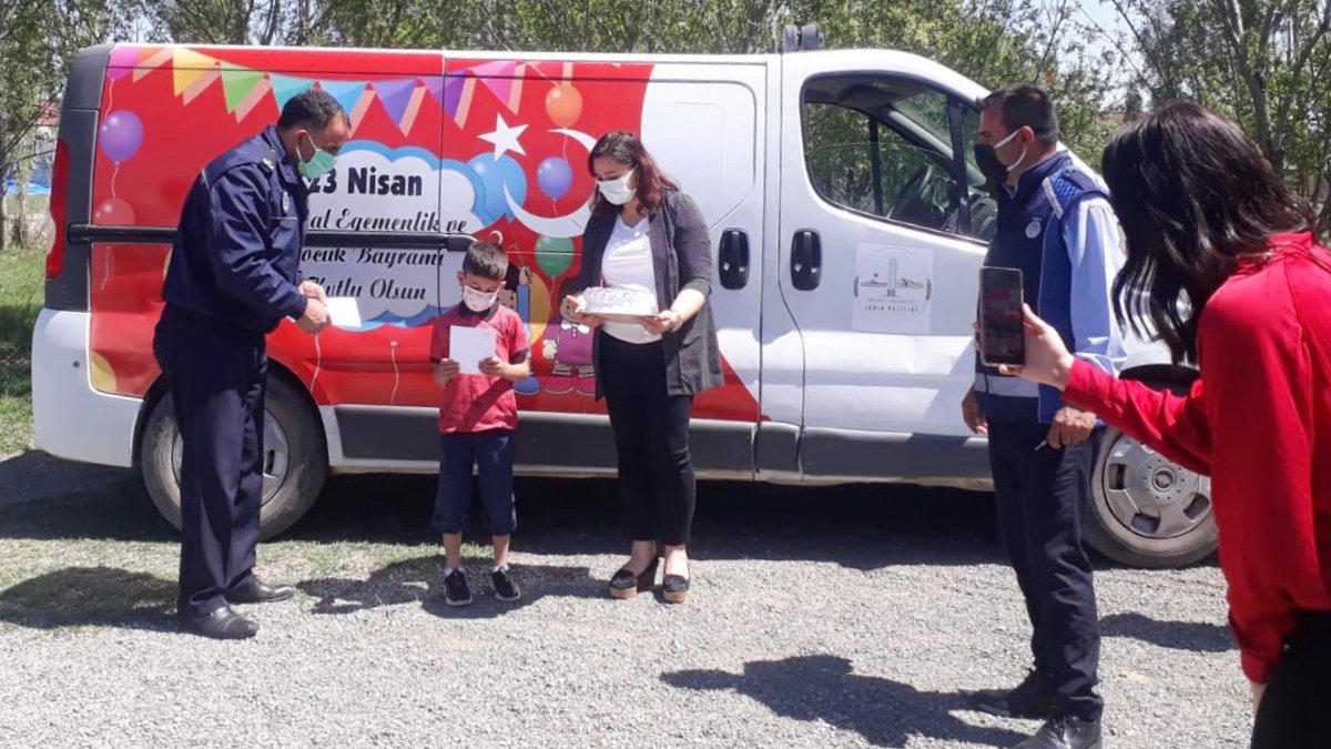23 Nisan'ı evlerinde kutlayan ve bugün doğum günü olan öğrenciler, öğretmenlerini görünce büyük sevinç yaşadı.