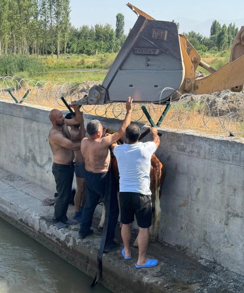 Iğdır'ın Çalpala köyünde, Serkan Karabuğa'ya ait dana köydeki sulama kanalına düştü. Köylülerin ihbarıyla bölgeye iş makinesi gönderildi.