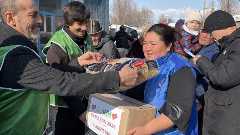Kırgızistan'ın başkenti Bişkek merkezde yürütülen çalışmalar kapsamında, 184 aileye kumanya ulaştırıldı. Ayrıca 400 kişinin katıldığı toplu iftar programı düzenlenerek ihtiyaç sahipleri aynı sofrada buluşturuldu.
