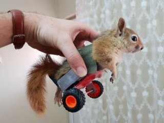 Hayat tamircisi Hasan Kızıl, bu kez bir sincabı hayata döndürdü. İki ayağını elektrik akımına kapılan sincap, artık yürüteç sayesinde koşabiliyor.