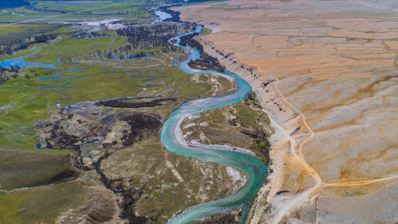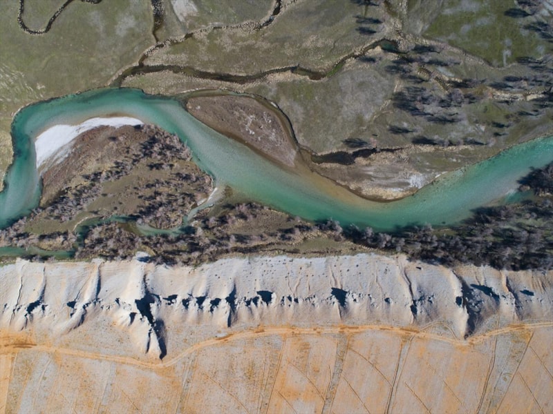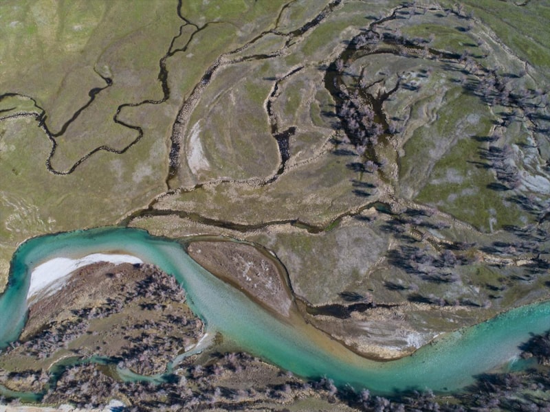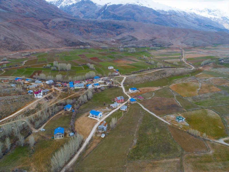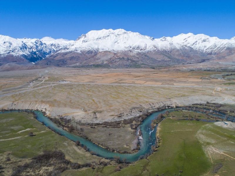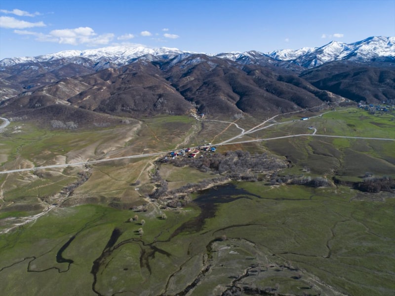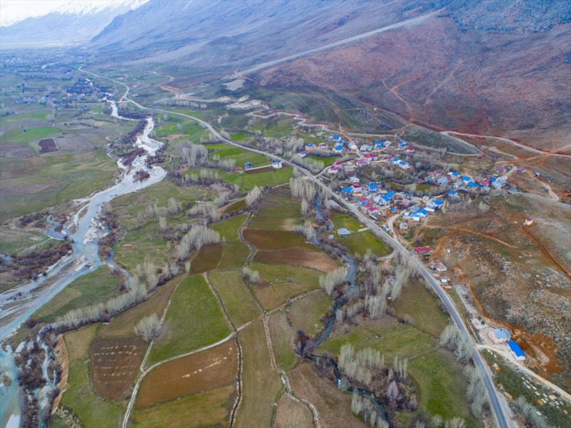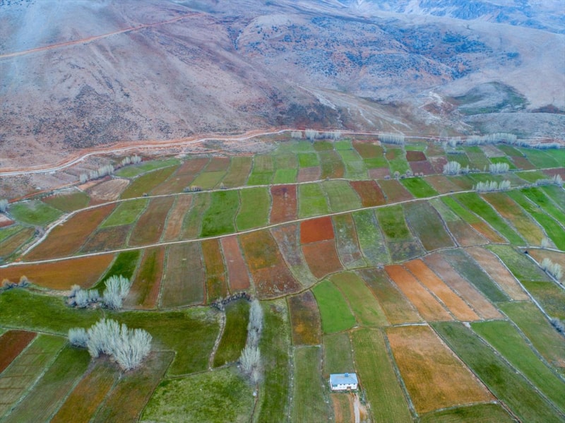 İlkbaharla birlikte dağlarda, vadilerde ve tarlalarda oluşan renk cümbüşü, drone ile görüntülendi.
