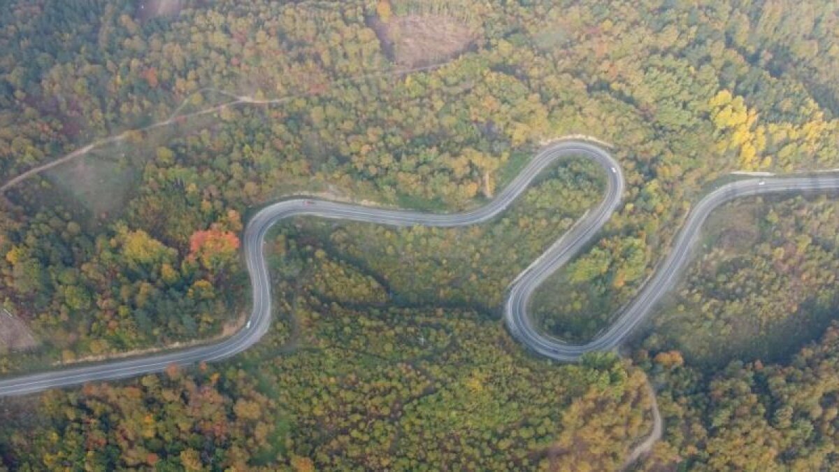 Yurtta yaşanan sonbahar havası çekilen karelere yansırken, İnegöl ilçesi ile Kütahya'nın Domaniç kara yolunda oluşan güzellik drone ile görüntülendi.