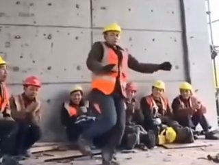 Çin'de bir inşaatta çalışan bir işçi, molada muhteşem bir dans gösterisi sergiledi.