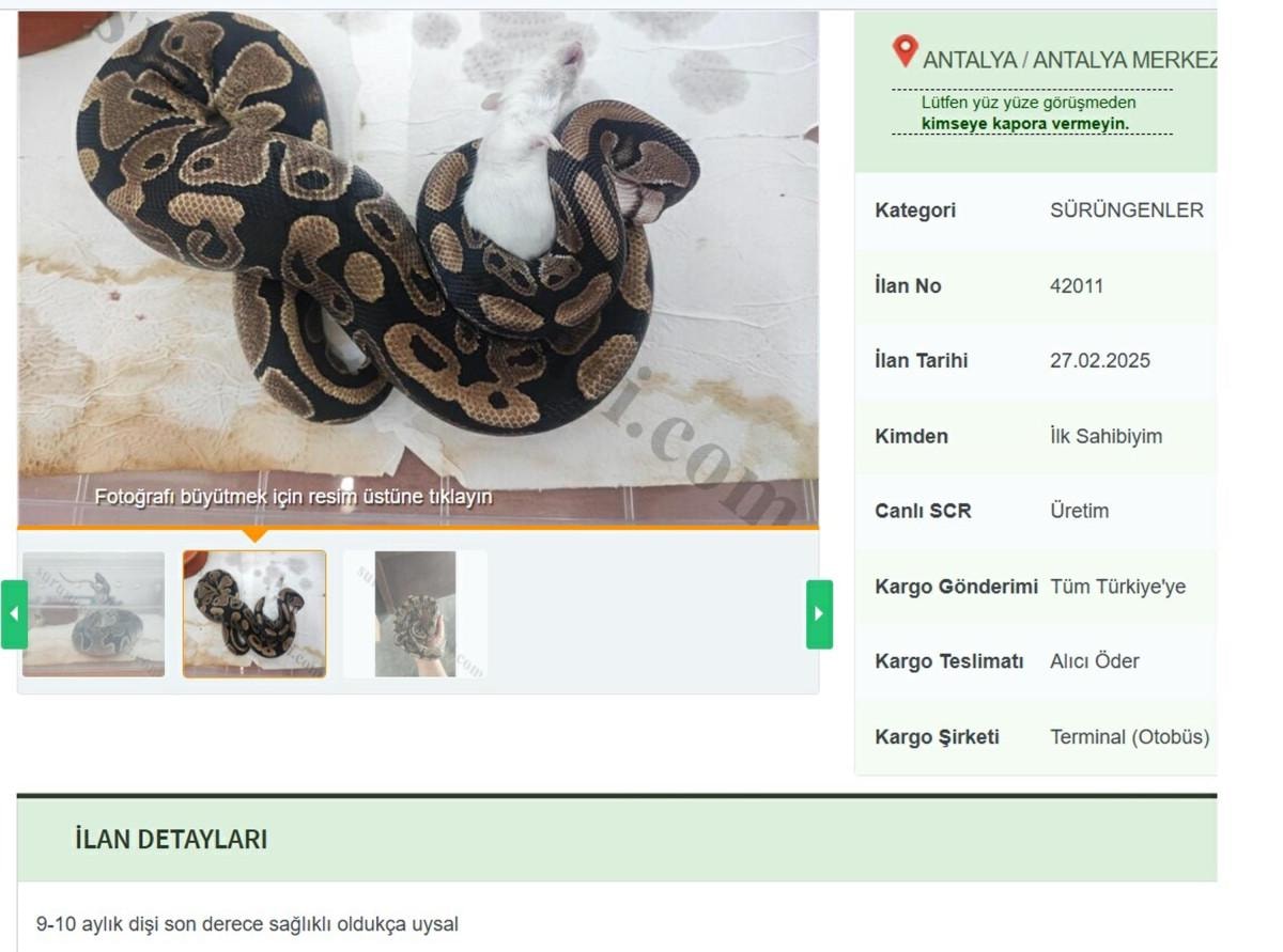 Pitonları satışa çıkartanların ilanların açıklama kısımlarına yazdıkları şu ifadeler ise dikkat çekiyor.