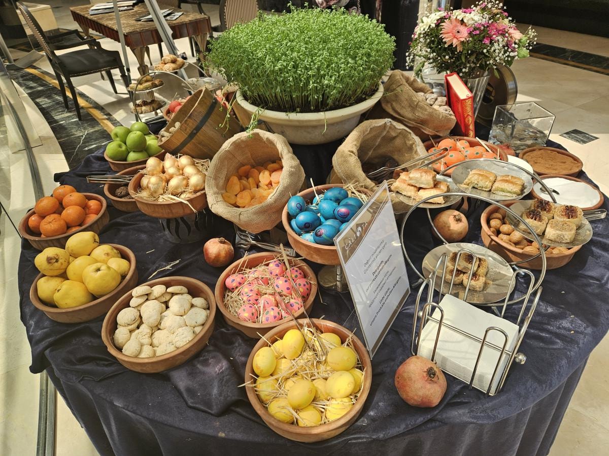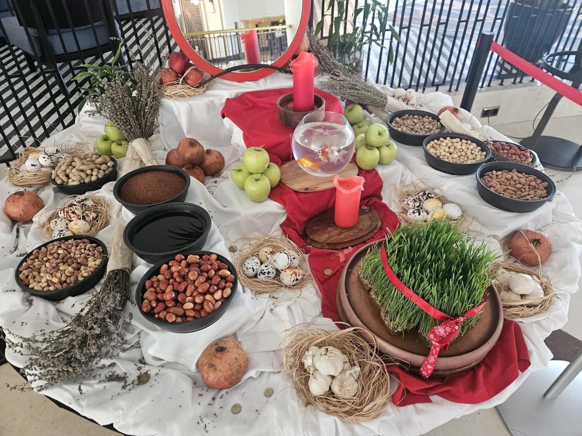 Aynalar, şamdan ve renkli yumurtalarla süslenen masalarda kırmızı balıklar da yer alıyor. Masa, Farsçada 'S' harfi ile başlayan ürünlerle süsleniyor.