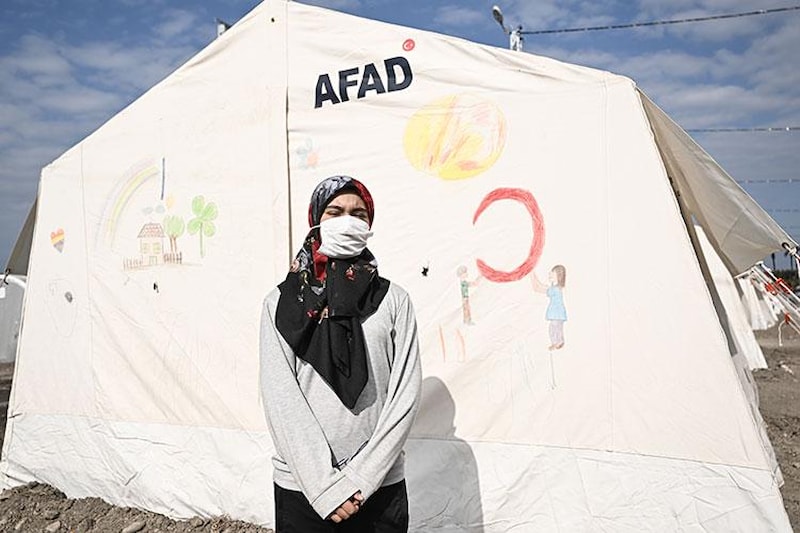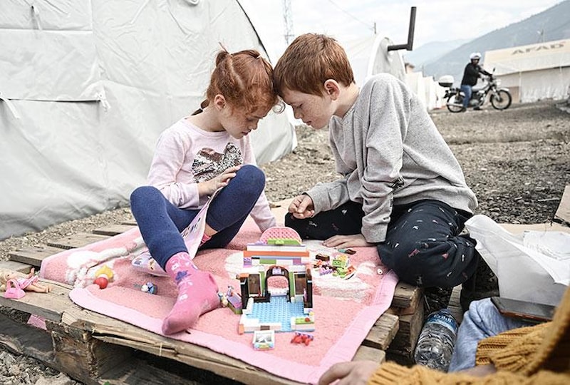 Çadırların arasındaki boşlukta kızıl saçlı çilli simalarıyla dikkati çeken çocukları Aybüke ve Mehmet ile parçalardan ev birleştirme oyunu oynayan anne Sultan Kurt ise deprem sırasında yaşadıklarını anlatırken gözyaşlarına hakim olamadı.