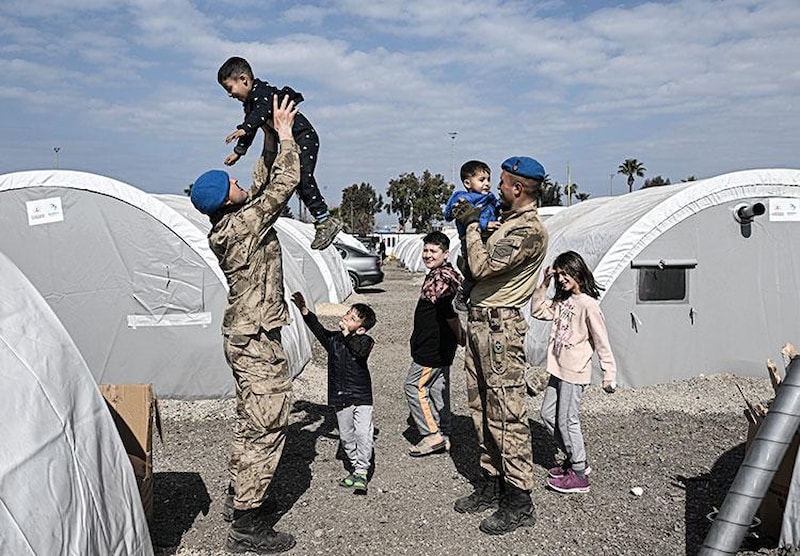Çadırların aralarında koşup oynayan çocuklara, bölgedeki jandarmalar da zaman zaman eşlik ediyor.