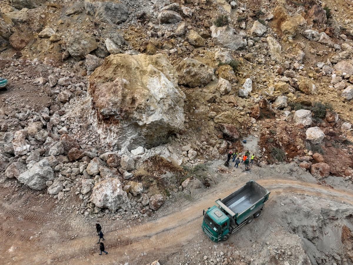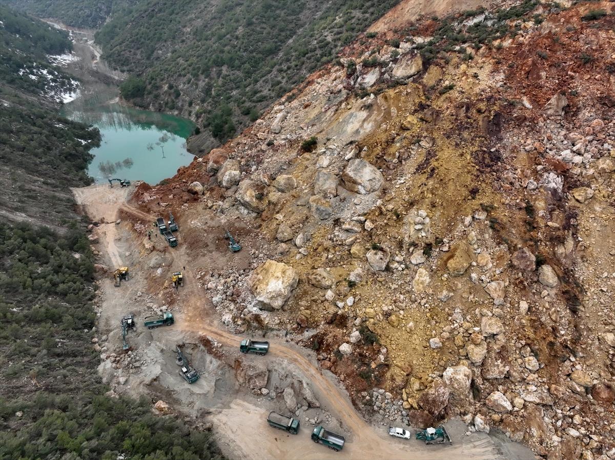 Ekipler, bölgedeki köylere ulaşımı sağlayan yolu açmak için birleşen iki dağı ayırdı. İki dağın arasındaki bölgeye düşen dev kayalar, depremin şiddetini gözler önüne seriyor.