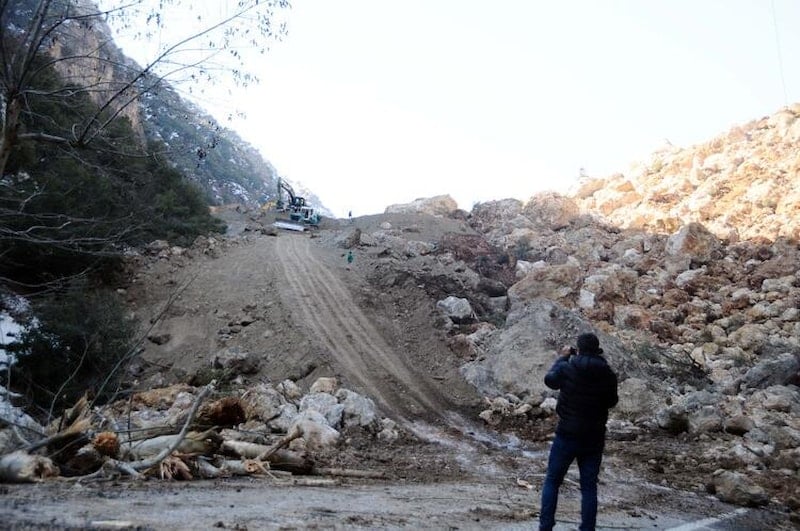 Yıkılan dağdan kopan kaya parçaları ulaşıma kapattığı yolun diğer yakasındaki dağ ile birleşti. Dağdan kopan kaya parçaları yoldan 50 metre yüksekliğe ulaşınca, kırsal mahallelere ulaşım durdu.