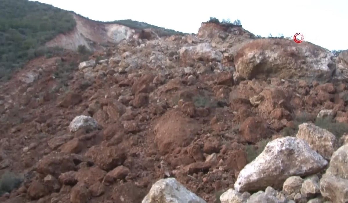 Gaziantep'in İslahiye ilçesinde kopan kaya parçaları iki farklı dağı birleştirdi. Dağların birleştiği noktada eriyen kar suları da doğal göl oluşturdu.