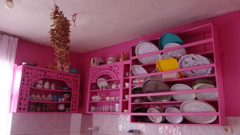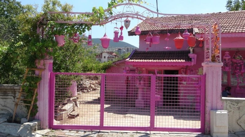 Tek katlı evinin dış kapısından duvarlarına, evin içerisinde bulunan süs eşyalarına kadar pembeye boyayan Akkul, pembe aşkının çocukluğunda başladığını söyledi.