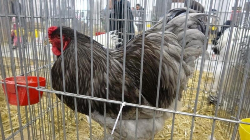 Antalya’dan Isparta’ya İlk defa gösteriye gelerek Light Brahma beyaz siyah Columbia renginde şampiyon olan tavuk sahibi Veli İpek,