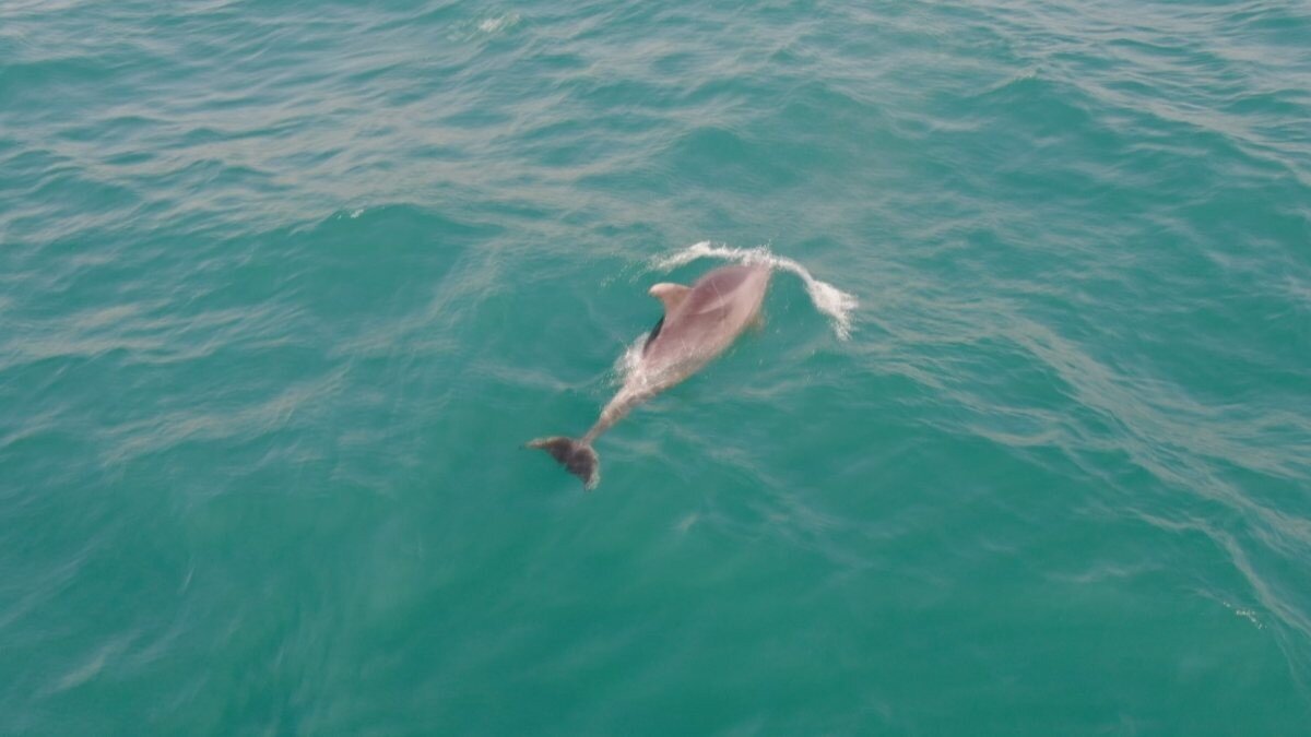 Sarayburnu açıklarında yüzen yunus balıkları drone ile havadan görüntülendi.