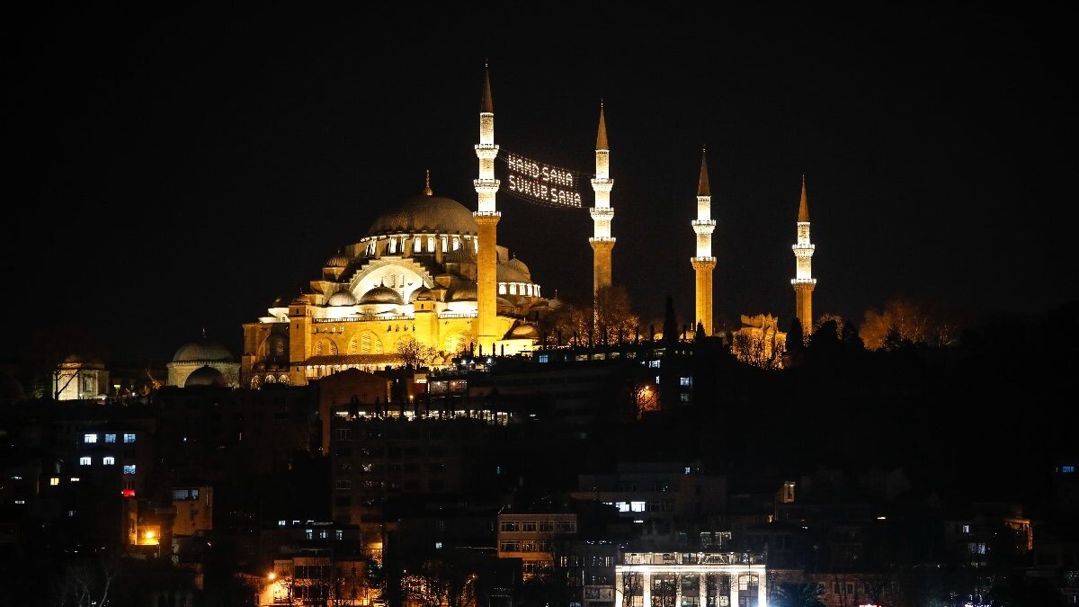 İstanbul'da Ramazan ayının gelmesiyle birlikte çift minareli camiler mahyalarla süslendi.