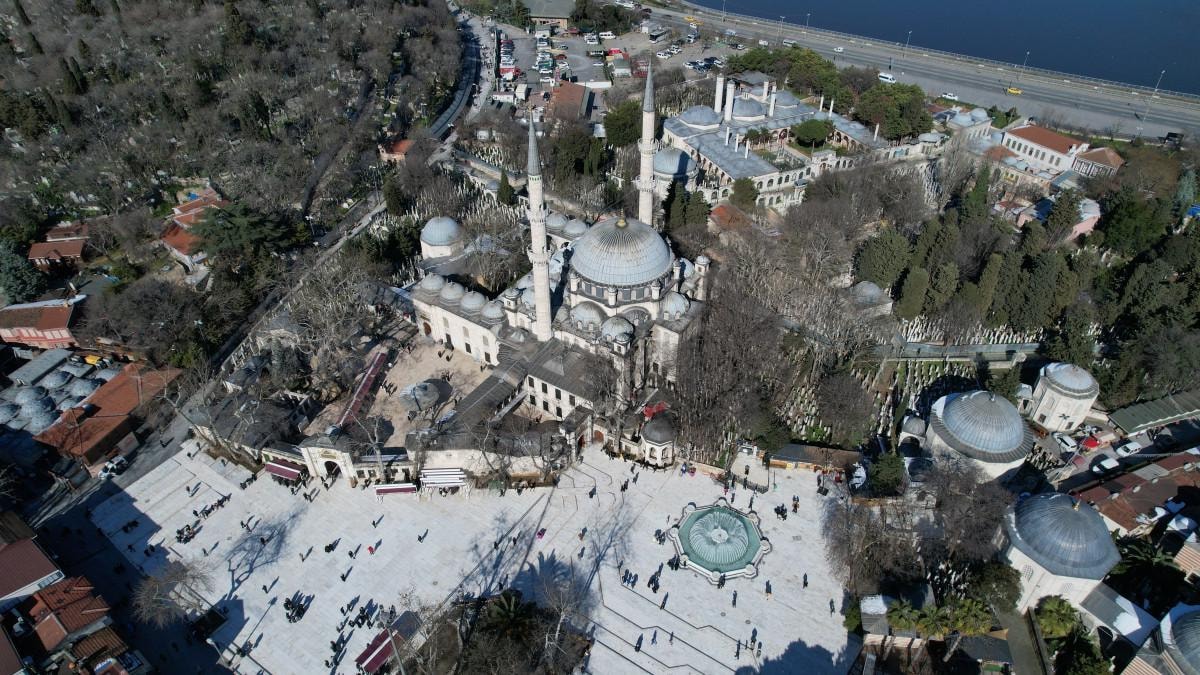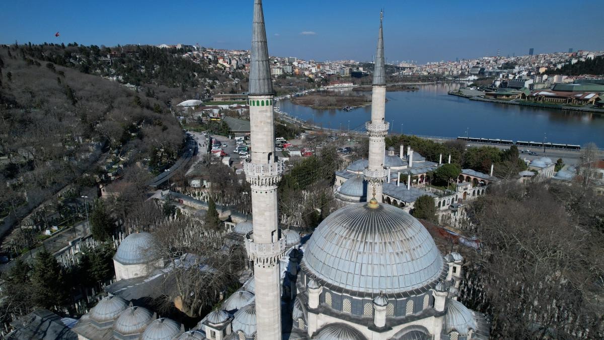 Her gün çok sayıda vatandaşın ibadet ettiği Eyüp Sultan Camii’ne de Ramazan ayının başlamasına günler kala mahyalar asıldı.