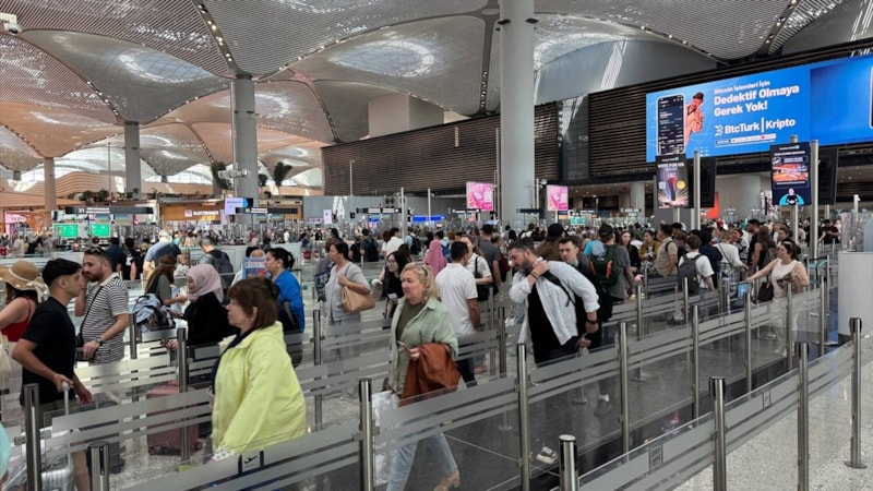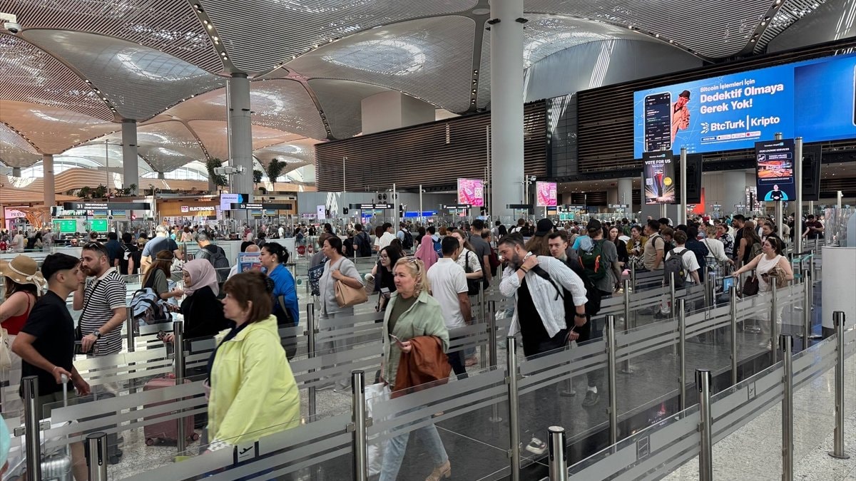 Sabahın erken saatlerinden itibaren İstanbul Havalimanı’na gelen yolcular, giriş kapılarında ve terminal önünde uzun kuyruklara neden oldu.