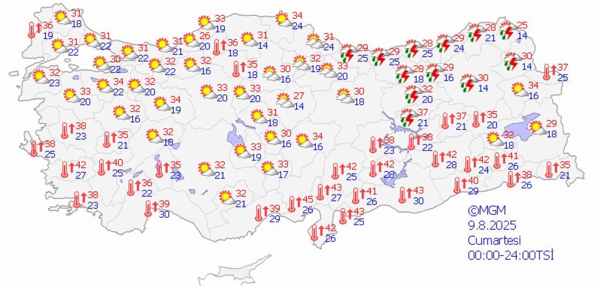 Buna göre, İstanbul'da bugün sabah saatlerinde 25 derece seviyelerinde seyreden sıcaklığın, öğle saatlerinde 31 dereceye kadar yükselmesi öngörülüyor.