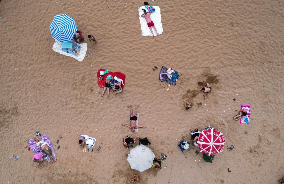 Plaja gelen vatandaşlar evlerinden getirdikleri havluları kumlara sererek güneşlendi.