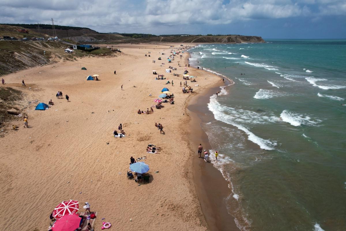 Kilyos’ta ücretli plajlarda şezlonglar boş kalırken, halk plajındaki yoğunluk göze çarptı.