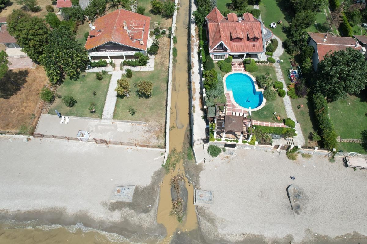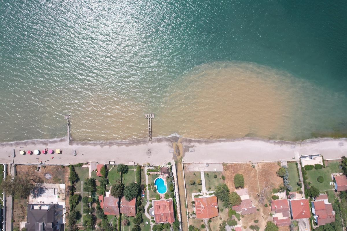 Kahverengiye dönen deniz ve adı geçen kanal havadan görüntülendi.