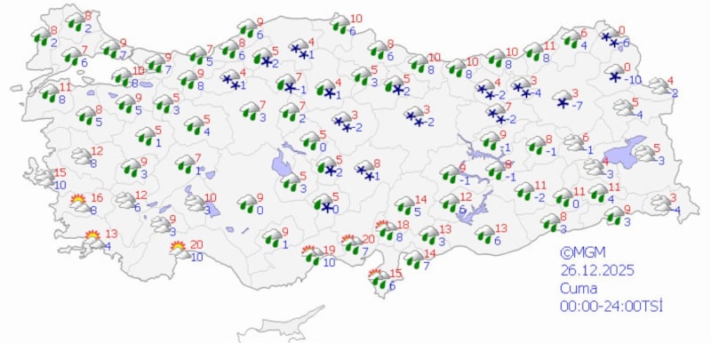 Meteoroloji 1. Bölge Müdürlüğü İstanbul Bölge Tahmin ve Erken Uyarı Merkezi'nden yapılan açıklamaya göre, 26 Aralık Cuma gününden itibaren Marmara Bölgesi'nin soğuk ve yağışlı havanın etkisi altına girmesi bekleniyor.