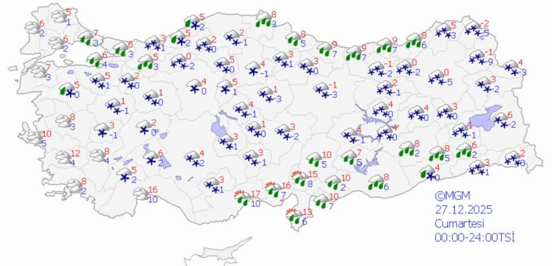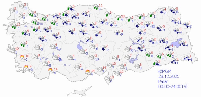 İl genelinde 29 Aralık Pazartesi günü, karla karışık yağmur ve yükseklerde de kar yağışı olması tahmin ediliyor.