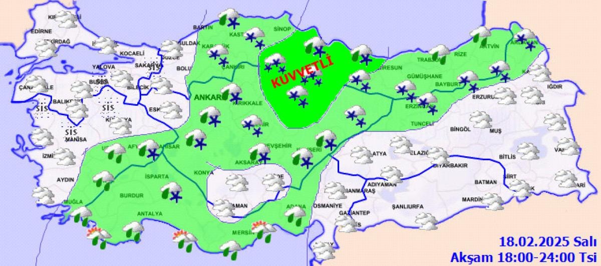 Meteoroloji Genel Müdürlüğü'nün değerlendirmelerine göre; Bölgemizin 18 Şubat 2025 Salı gününden itibaren Karadeniz üzerinden gelecek olan soğuk ve yağışlı havanın etkisi altına girmesi bekleniyor.
