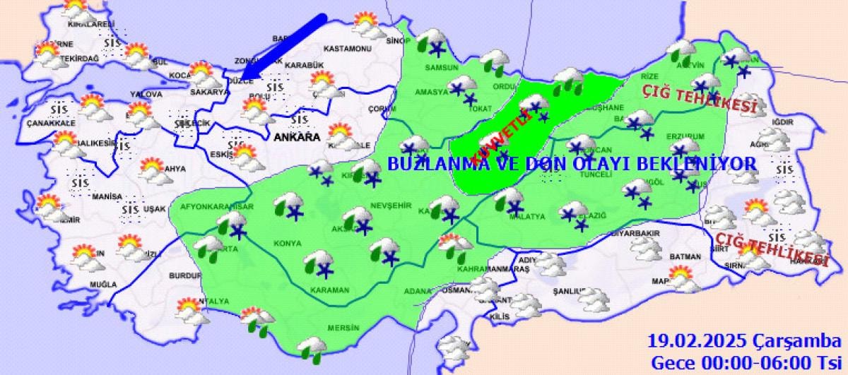 Meydana gelebilecek kar yağışı, buzlanma ve don olaylarına karşı, Çevre, Şehircilik ve İklim Değişikliği Bakanlığı Meteoroloji Genel Müdürlüğü’nün hazırlayıp yayınladığı tahmin ve meteorolojik erken uyarıların takip edilmesi önem arz ettiği bildirildi." denildi.