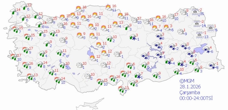 Ayrıca hava sıcaklığının, kuzey ve iç kesimlerde mevsim normallerinin üzerinde, diğer yerlerde mevsim normalleri civarında seyredeceği aktarıldı.