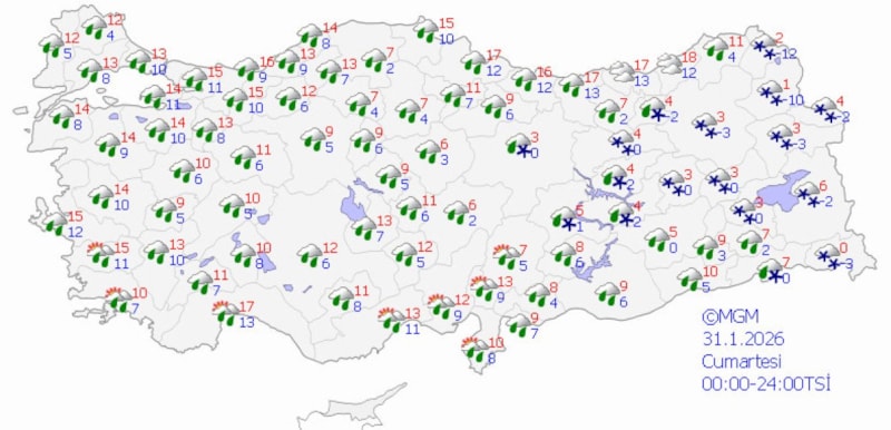 Meteoroloji Genel Müdürlüğü, yeni haftanın hava durumu raporunu yayınladı.
