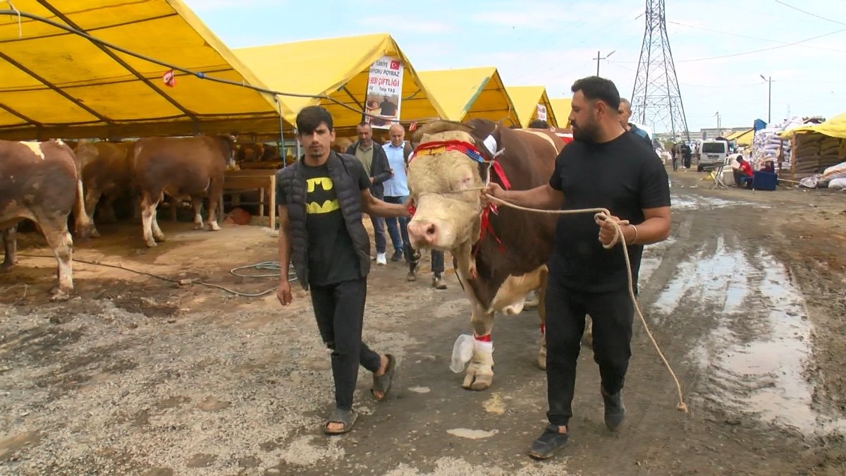 Esenyurt'ta kurulan hayvan pazarının gözdesi de ağırlığı 1,5 tonu aşan ve 'Türkiye'nin Şampiyonu' lakabıyla anılan 'Poyraz' adındaki boğa oldu.