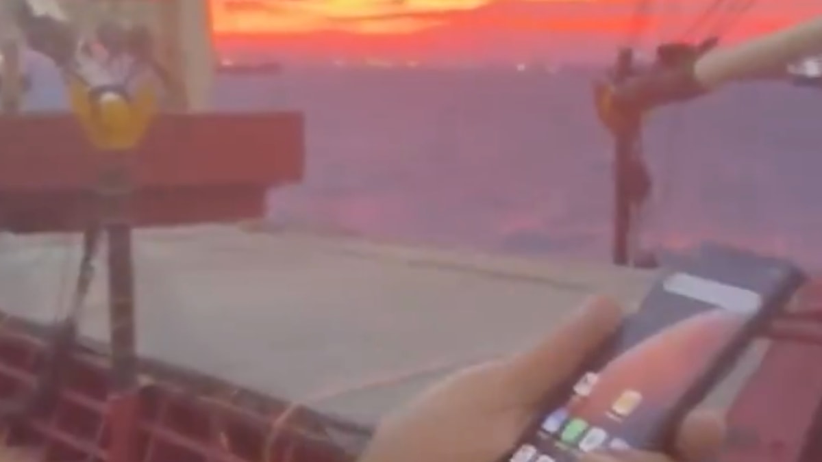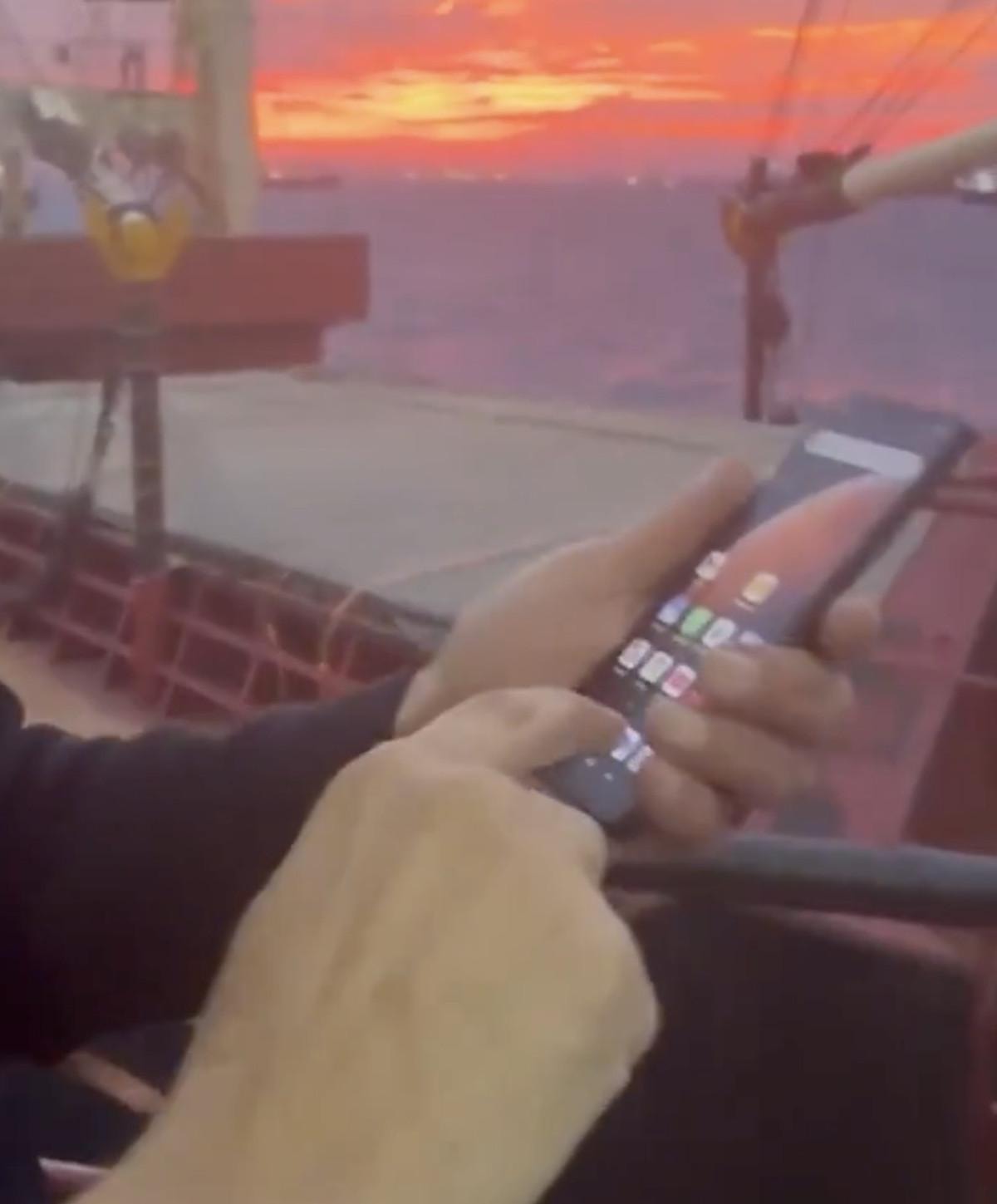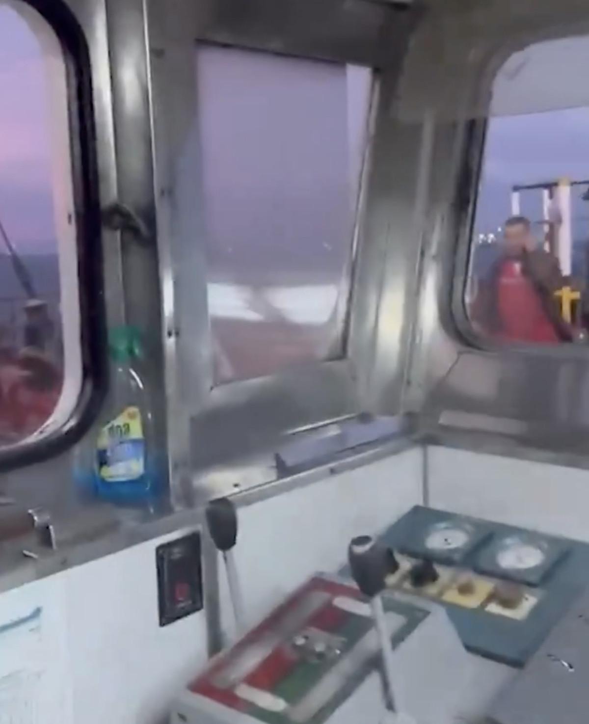 Görüntülerde, gemi personelinin kendilerine yaklaşan diğer gemiyi gördüklerindeki panik halleri ve iki geminin birbirine sürtmesi yer aldı.